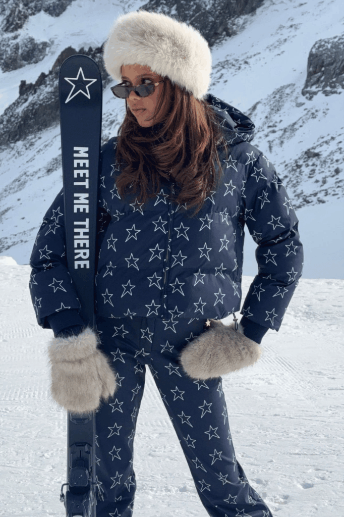This season, structure is everything. Bulky layers have quietly faded out, replaced by sharper lines and controlled proportions. Modern Women’s ski outfit ideas feel tailored rather than oversized, and even the boldest looks are anchored in clean silhouettes.